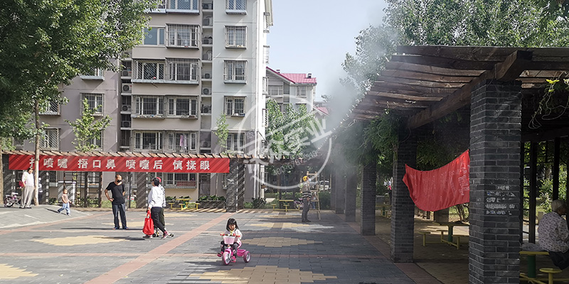該項目位于北京順義區馬坡鎮佳和宜園小區,主要圍繞小區內部的長廊、道路、綠化帶做的集噴霧造景、降溫、降塵為一體的霧森項目。