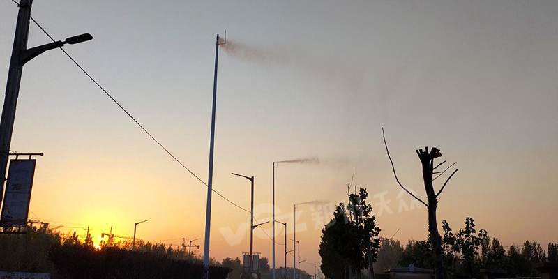 位于平鄉好人路,在道路邊安裝10米高桿,在頂部安裝高空降塵除霾設備,360度旋轉,凈化道路周邊的空氣,改善城市空氣質量。